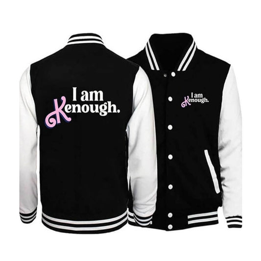 I Am Kenough Bomber Jacket Couples Pink and Black Baseball Jacket for Women Men