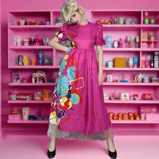 Weird Barbara Costume Movie Kate McKinnon Hot Pink Cosplay Dress Halloween Outfit for Kids Adults