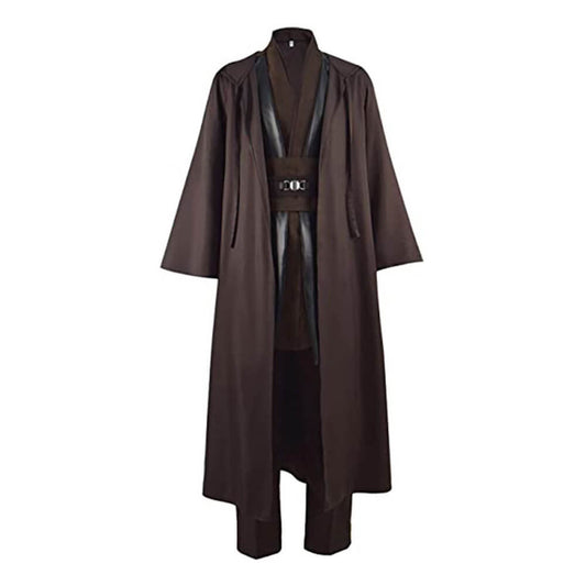 Anakin Skywalker Costume Adult Brown Jedi Hooded Robe Shirt Pants Full Set Outfits