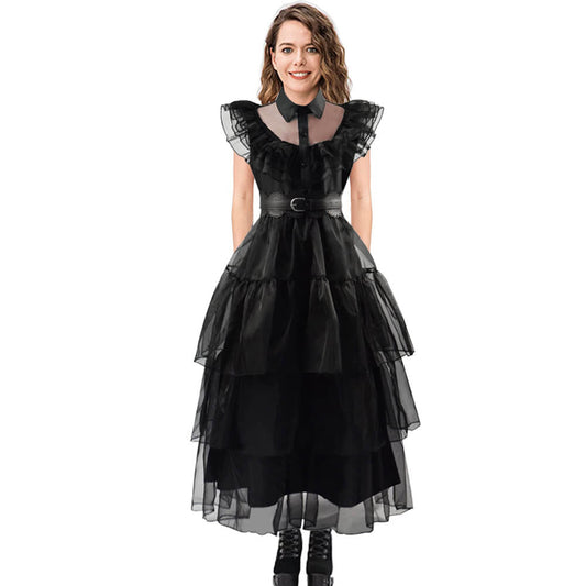 Wednesday Addams Dress Wednesday Costume Black Gothic Tulle Addams Cosplay Party Dress