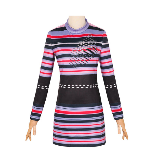 Women's Astrid Deetz Costume Striped Purple Dress for Halloween Cosplay