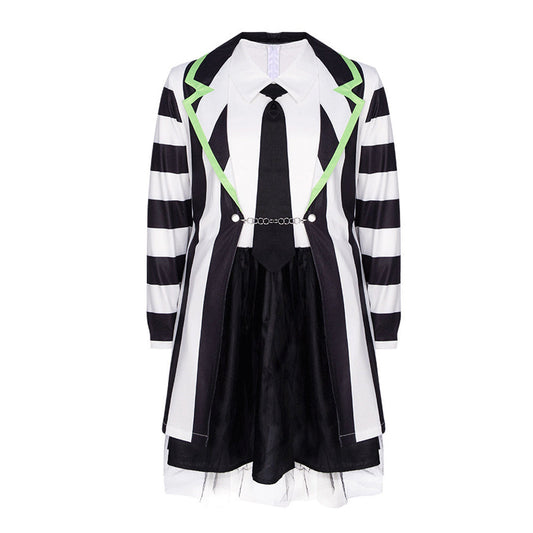 Girls Betelgeuse Costume Beetle Ghost Black and White Striped Dress Suit for Cosplay