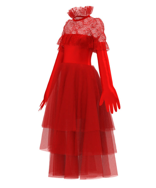 Women Lydia Deetz Costume Red Wedding Dress Horror Movie Beetle Bride Cosplay Outfit
