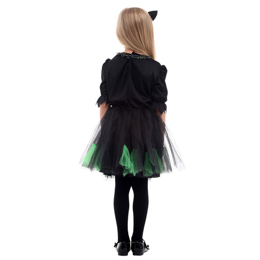 Kids Cat Costume Black Kitty Dress and Headband Girls Cat Cosplay Costume