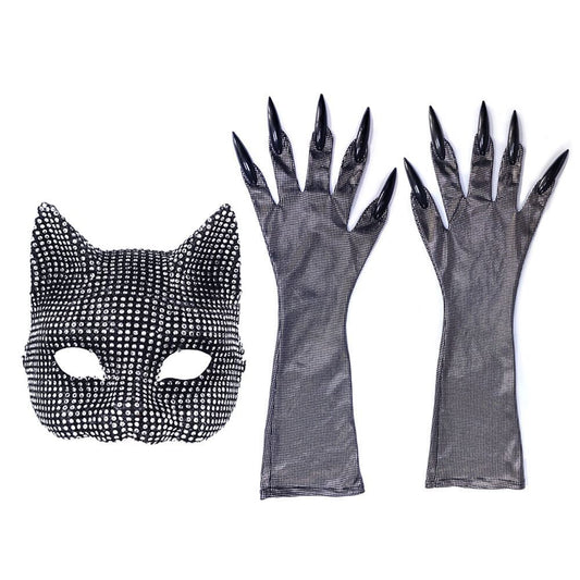 Women Cat Mask Masquerade Face Mask Party Roleplay Cat Mask and Gloves