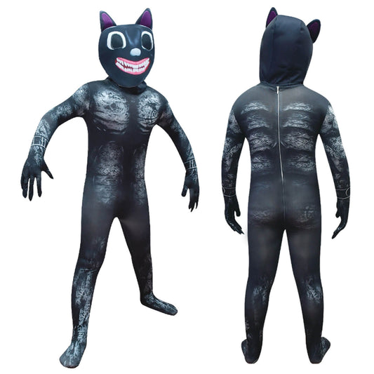 Kids Black Cat Costume Hallowen Cosplay Jumpsuit Mask Full Set for Boys Girls