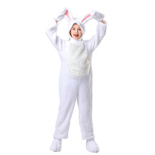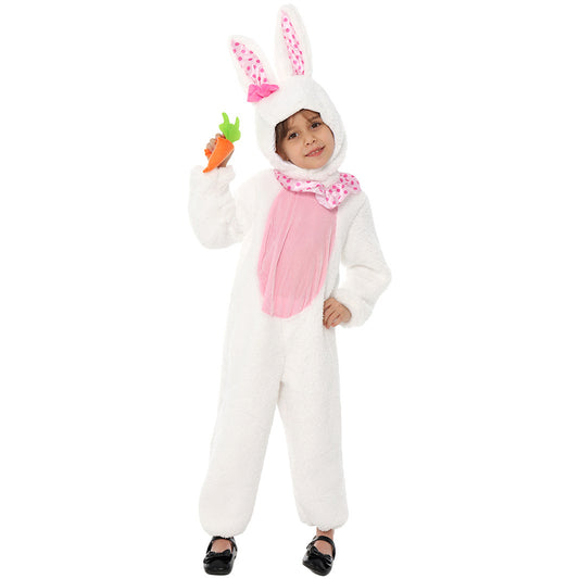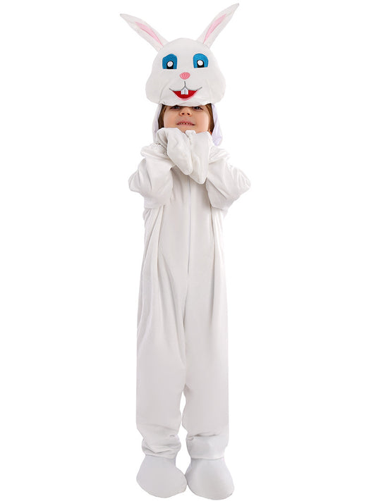 Easter Bunny Costume Kids Party Cosplay Outfit White Onesie with 3D Bunny Headgear