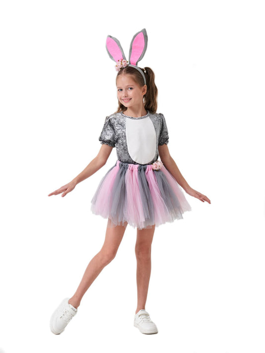 Girls Bunny Costume Kids Easter Grey Rabbit Tutu Dress and Headband