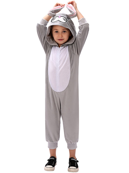Kids Bunny Costume Unisex Bunny Furry Outfit White/ Grey Bunny Jumpsuit and Headgear