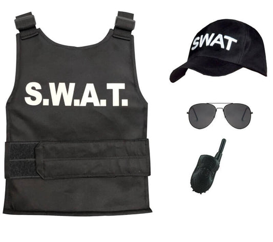 Kids SWAT Costume Police Outfit Bulletproof Vest Glasses Interphone and Hat 4pcs Suit for Cop Cosplay
