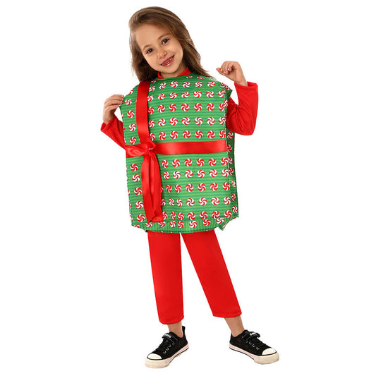 Kids Christmas Present Costume Boys Girls Gift Box Tops and Jumpsuit 2pcs Suit for Xmas Party