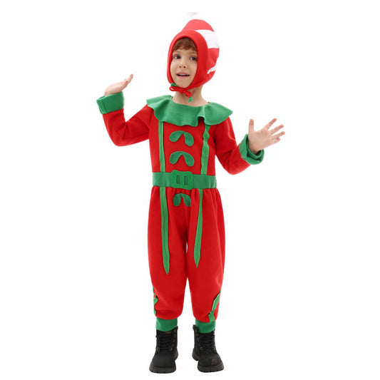 Kids Elf Costume Christmas Elf Outfit Boys Girls Xmas Jumpsuit and Hat 2pcs Elf Suit