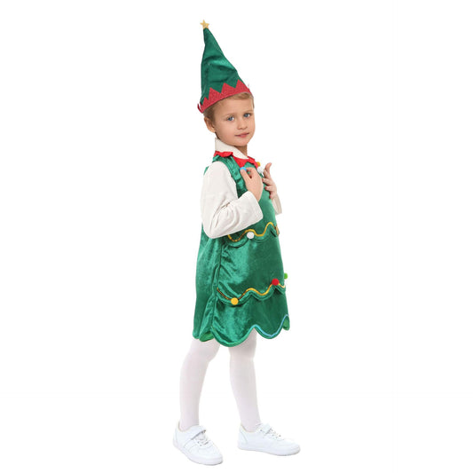Girls Christmas Tree Dress with Hat Funny Christmas Costume Festive Party Outfit
