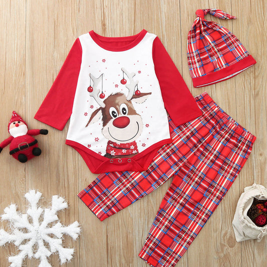 Christmas Moose Family Matching Costume Baby Romper Kids Adult Long Sleeve Tops Pants Suit