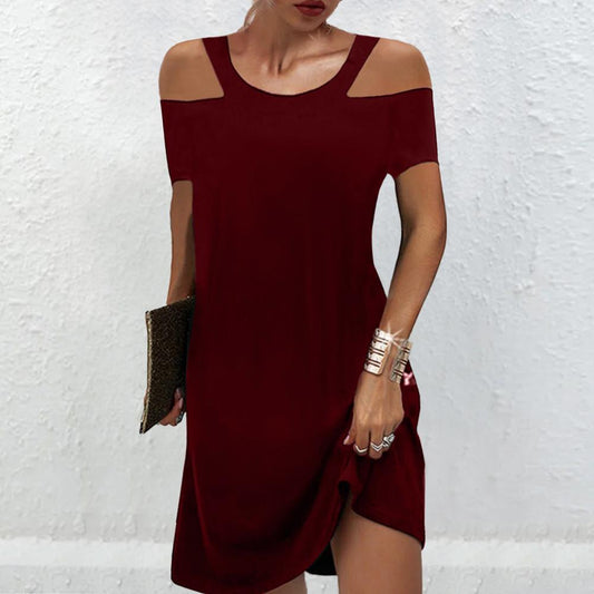 White Stripe Pattern Round Neck Short Sleeve Dress