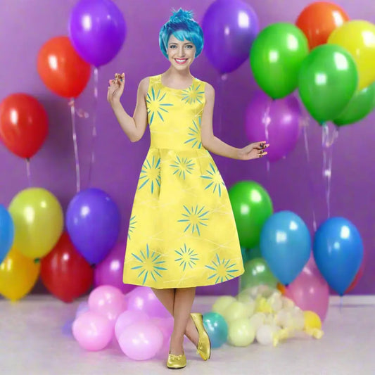 Women Inside 2 Joy Costumes Classic Yellow Joy Dress Halloween Cosplay Outfit