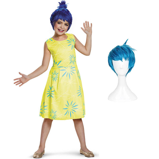 Girls Inside 2 Joy Costume Classic Bright Yellow Sleeveless Joy Dress Kids Joy Cosplay Halloween Costume