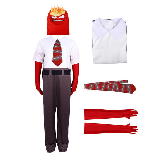 Anger Costume Inside 2 Anger Cosplay Jumpsuit with Tie and Gloves Full Set For Kids and Adults