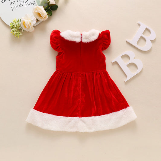 Infant Baby Grils Christmas Red Dress Kids Sleeveless Plush Lapel Collar Xmas Outfit