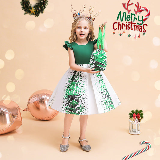 Girls Christmas Costume with Candy Bag Backless Party Dress Kids Fancy Festival Dress for 2-8 Years