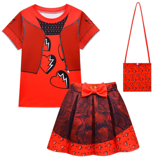 Kids Red Costume Princess T-shirt and Skirt Suit The Daughter of The Queen of Hearts Outfit