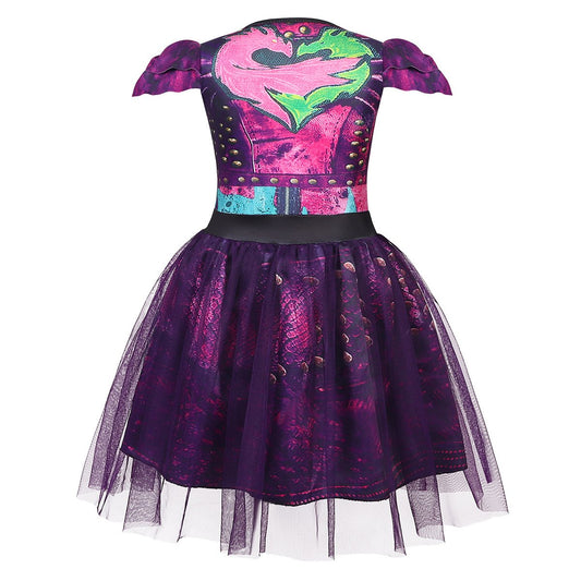 Kids Uma Costume Tulle Mesh Princess Dress Girls Halloween Dress Up Outfit