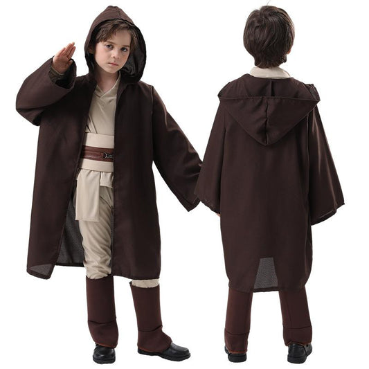 Boys Master Knight Costume Force Master Halloween Outfit Tunic Hooded Robe Pants and Foot Cover Suit