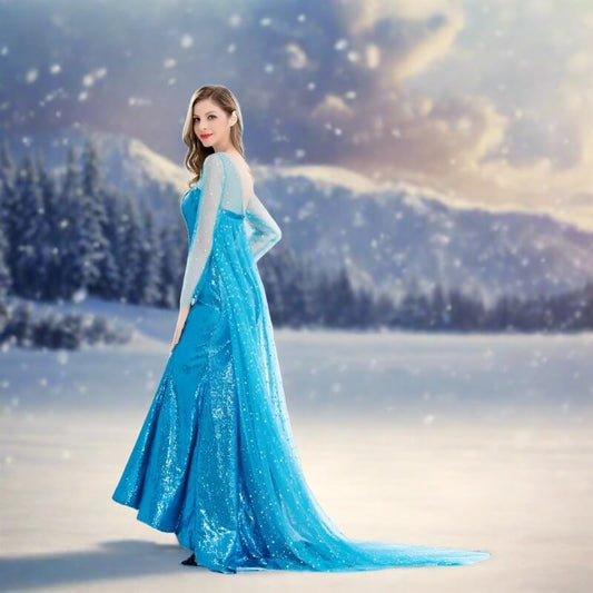 Princess Elsa Dress Sequin Mesh Long Elsa Costume Adult Snow Queen Costume