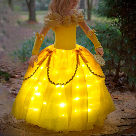 Kids Princess Belle Dress Light Up Dress Beauty Party Dress Girls Birthday Princess Dress