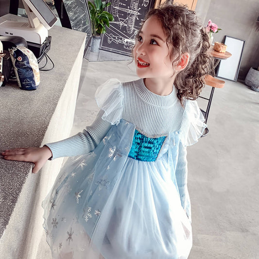 Little Girls Winter Princess Dress Snowflake fluffy Sweater Dresses 3-9 Years