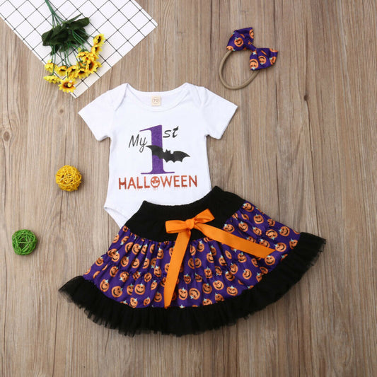Baby Girls Halloween Romper Tutu Dress Headband Outfits 3PCS