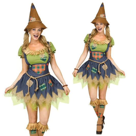 Women's Scarecrow Costume Sweet OZ Scarecrow Costume Role Play Dress Up Outfit