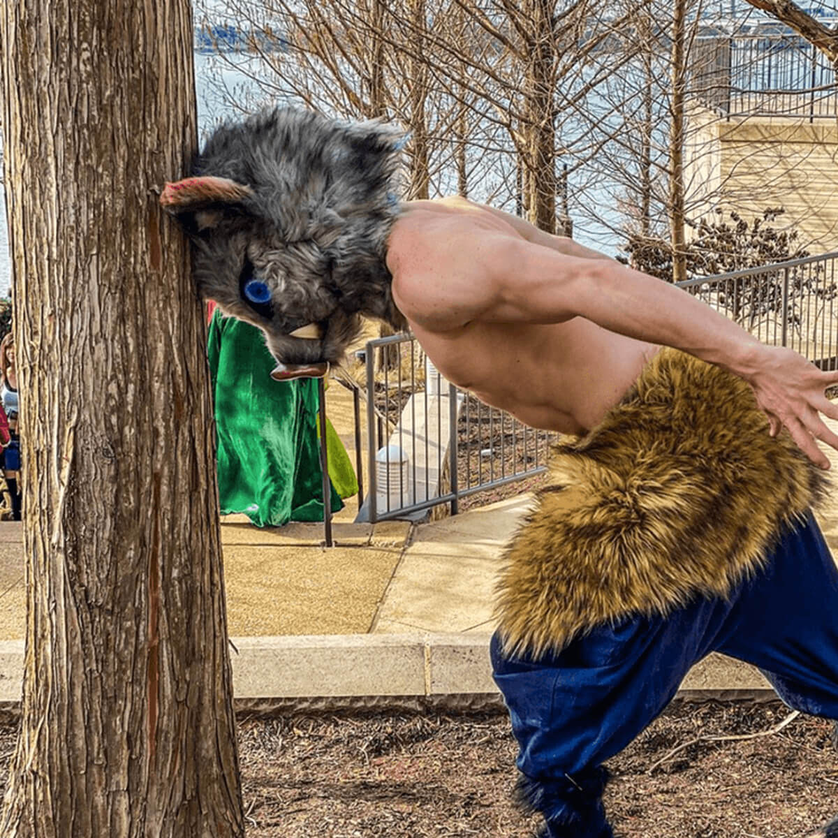 Dress on the Hashibira Inosuke costume and be the strongest fighter to get you out of the tough situation!