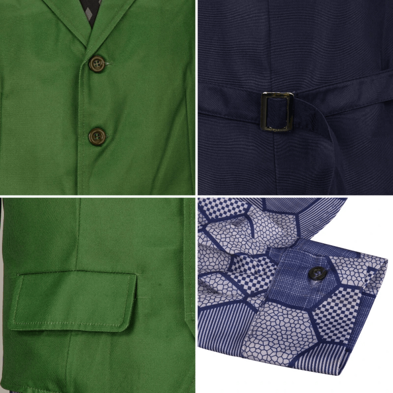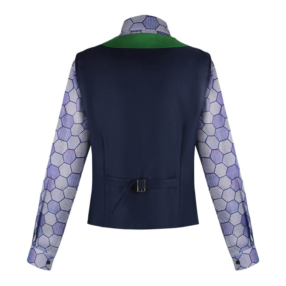 - This lush, green vest brings a dash of playful color to any formal event. The vest has an adjustable back strap, allowing you to get a stylish fit. It’s designed to match The Joker suit pieces, so it pairs perfectly with the other pieces to create a cinematic fashion experience.