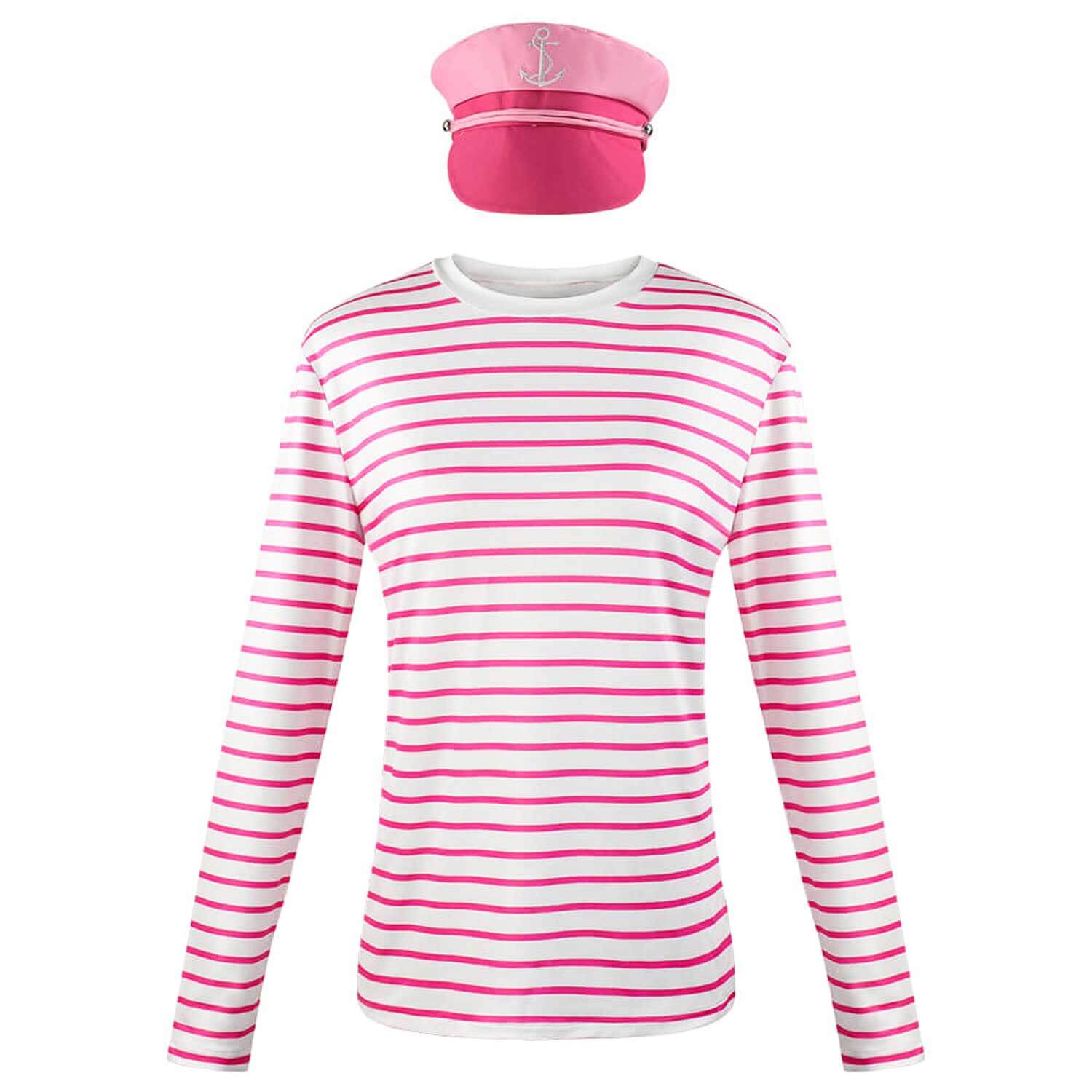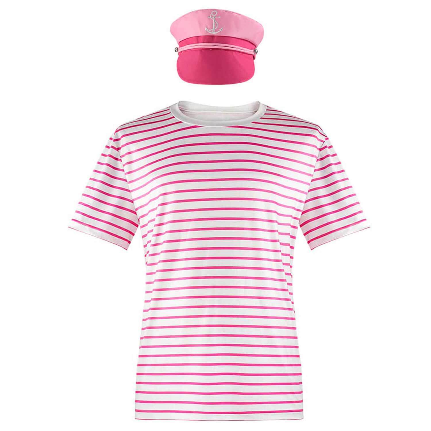 Women and Men Nautical Shirt Couple's Pink Striped Shirt with Sailor Cap Halloween Costume