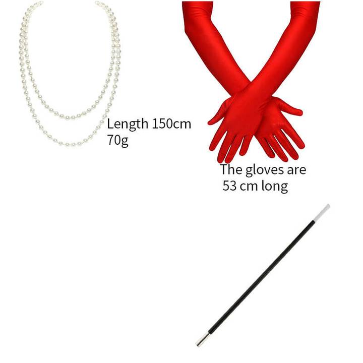 - Costume: include one dress, one pair of gloves. Wear them exactly like the character.