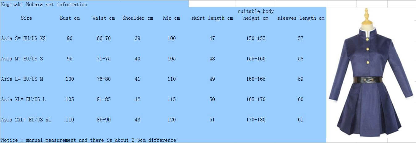 - Kugisaki Nobara Dress Full Set: 1x Tops, 1x Dress, 1x Bag and 1x Belt.