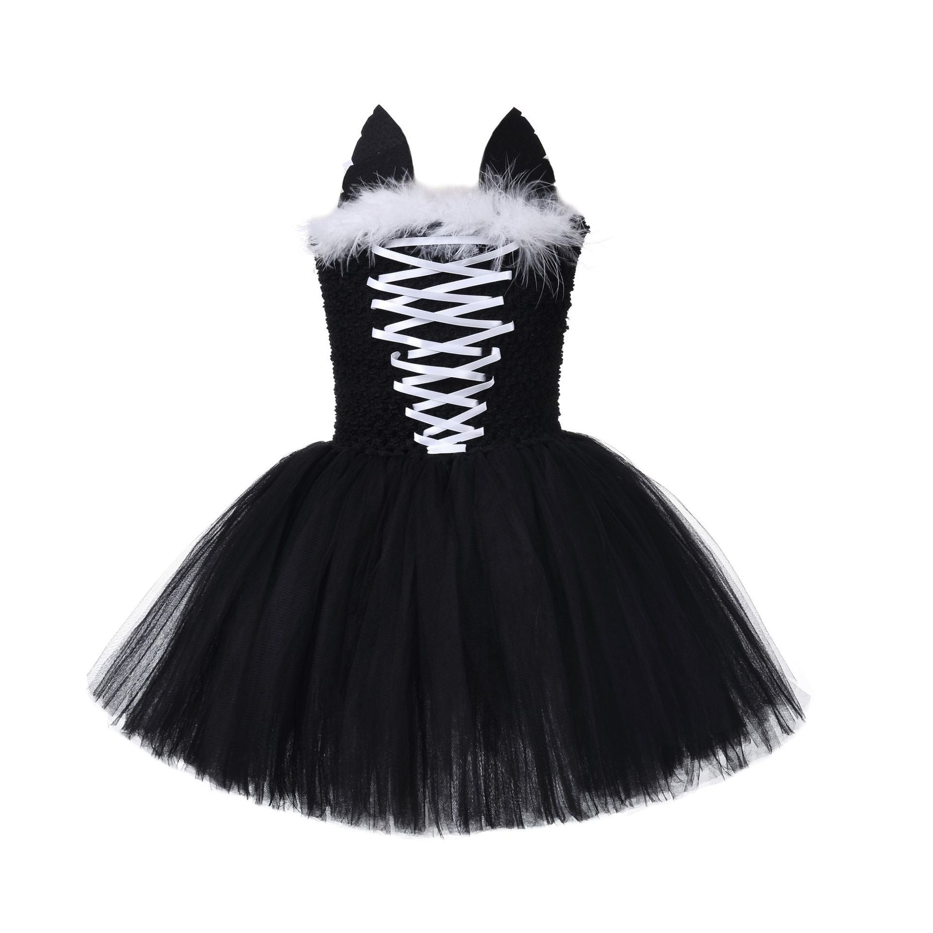 Kids Cat Costume Black Kitty Tutu Dress with Headband Girls Black Cat Costume