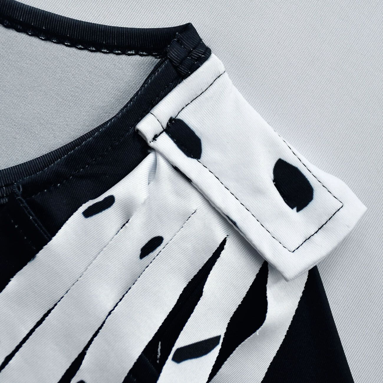 Girls White/ Black Dress Long Sleeve Black Dot Tassel Skirt Kids Halloween Costume for Cosplay.