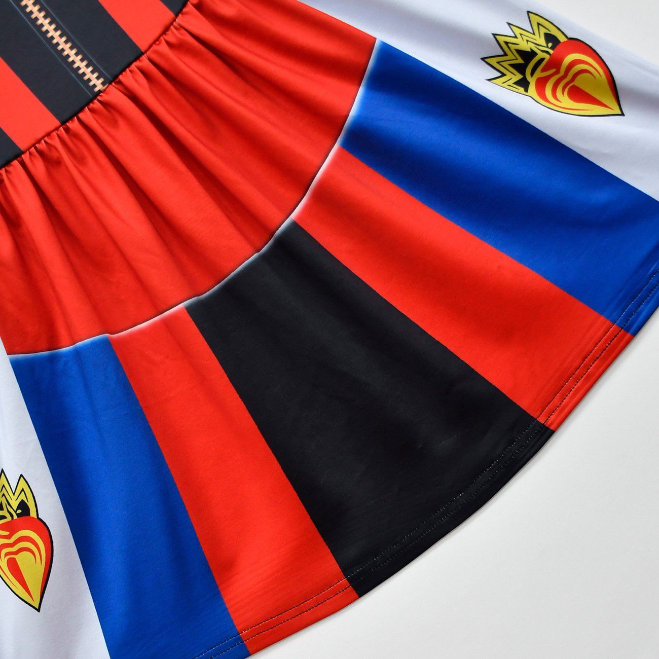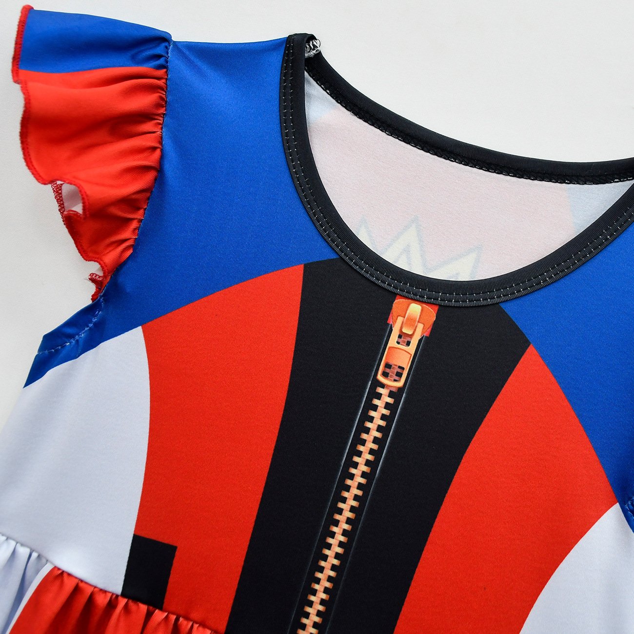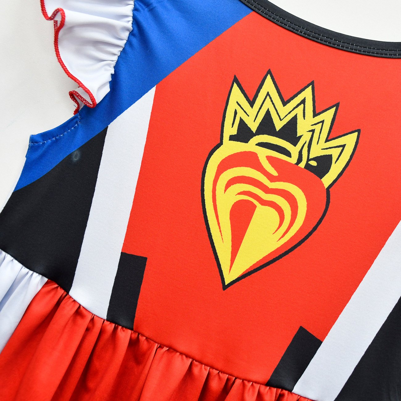 Girls Evie Costume Fly Sleeve Dress with Blue Wig for Halloween Cosplay.