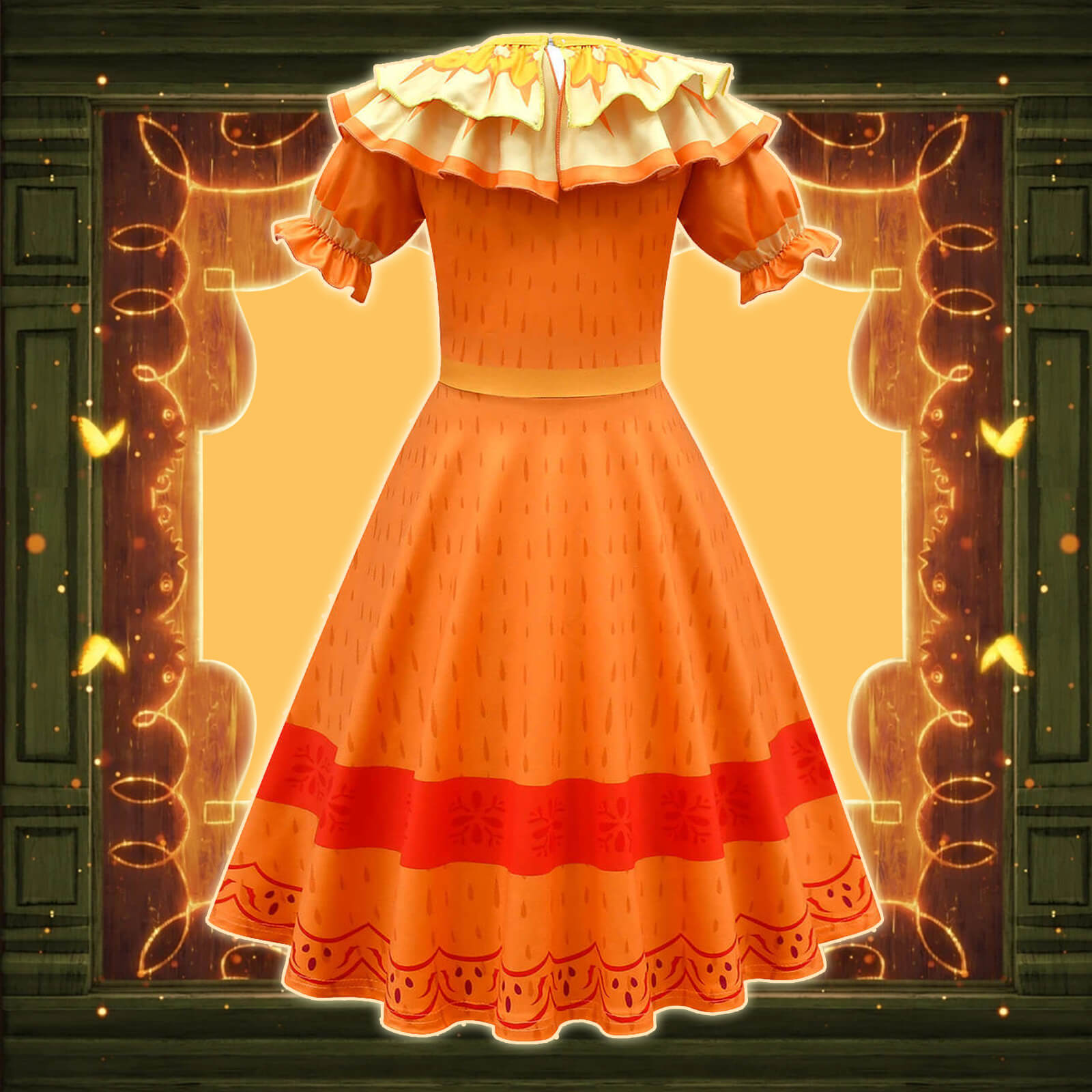 - Dress features a scalloped collar and short sleeves; Match with authentic printed-style designs. 100% restored the character.