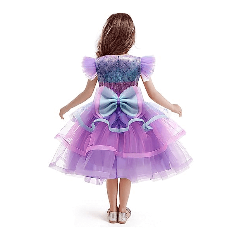 Girls Purple Princess Arial Dress Little Mermaid Costume 6 Layers Cake Dress Birthday Party Tutu Dress