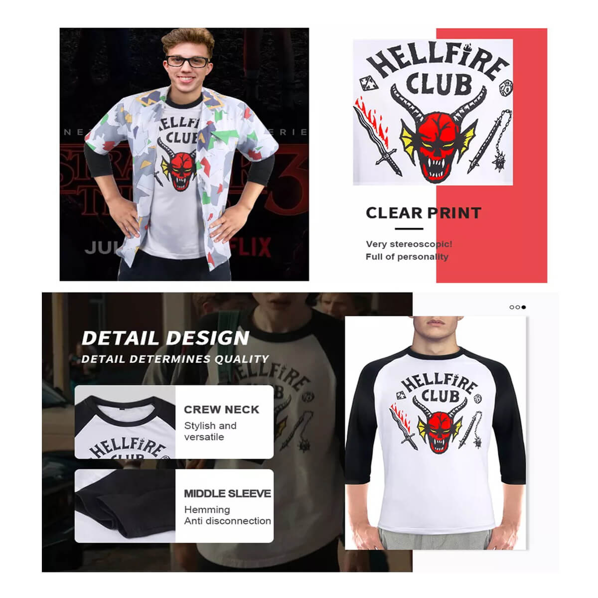 - This T-shirt features a very eye-catching design with the "Hellfire Club" logo and skull weapon printed on the chest. Lettering and patterns are not easy to fall off when washed.