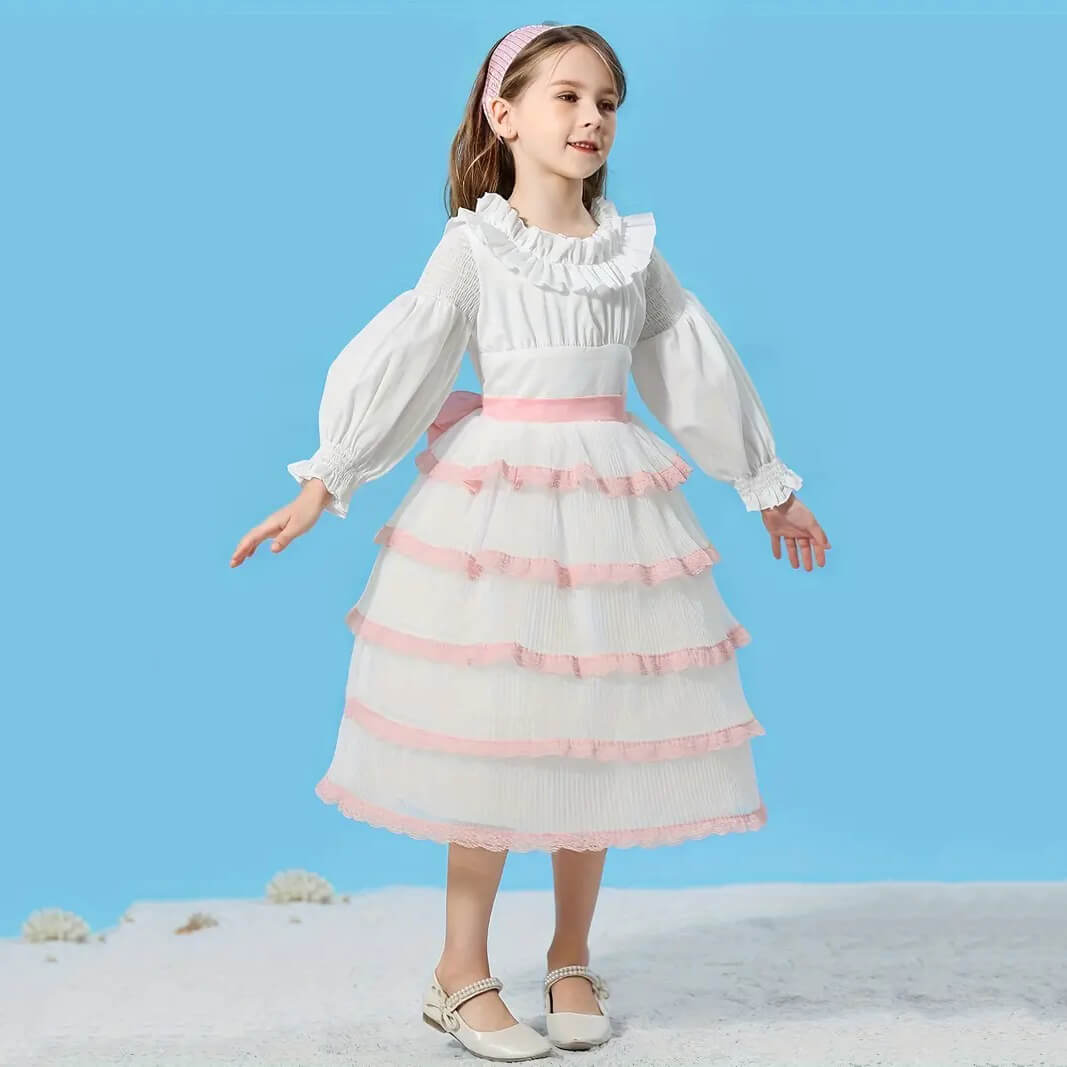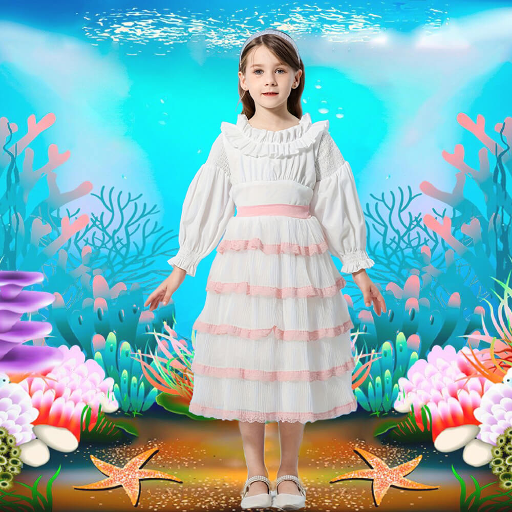 - The mermaid costume features tiered puff sleeves and the shoulder is stacked with ruffed trim. Comes with a big bow knot at the back side make the dress elegant and stylish.