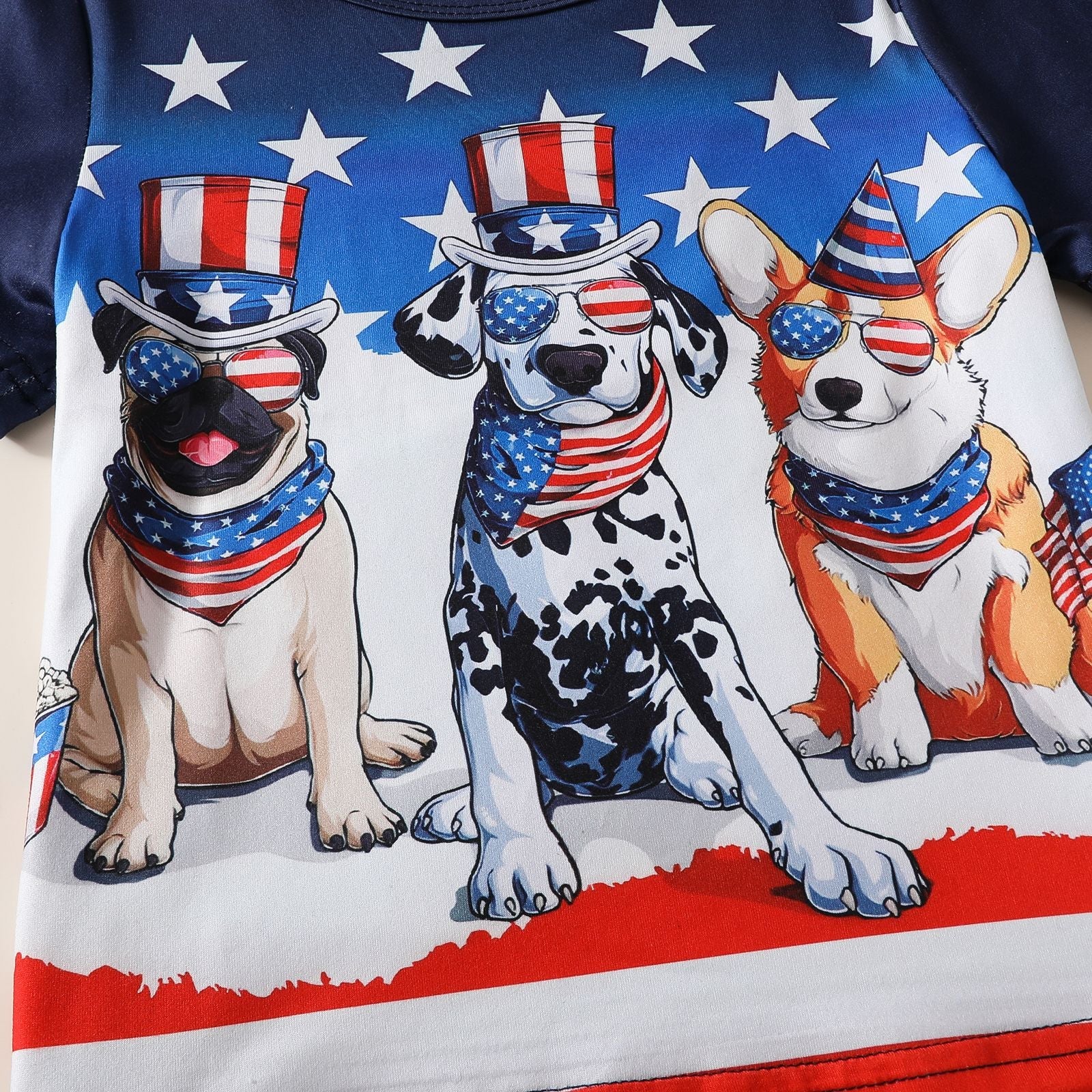 Kids Fourth Of July Dogs T-shirt and Shorts Summer Patriotic Top.
