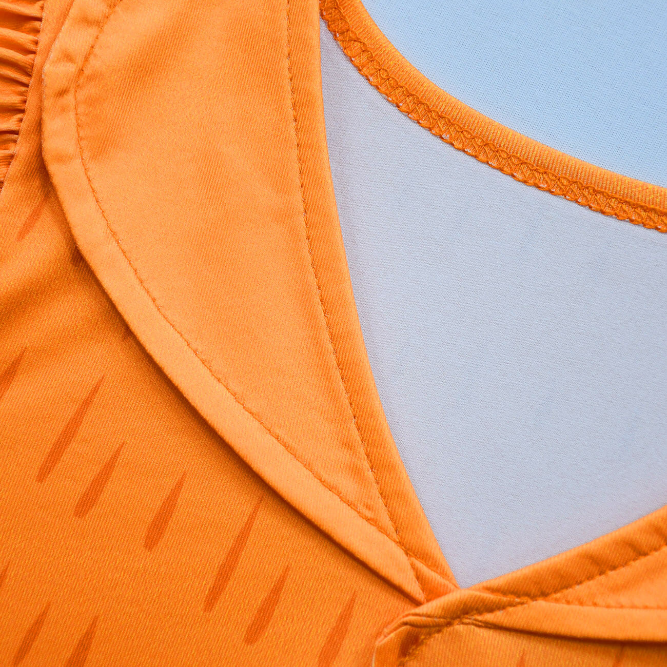 - Dress features a high-low fashion design and ruffled sleeve, match with authentic printed-style designs. 100% restored the character.