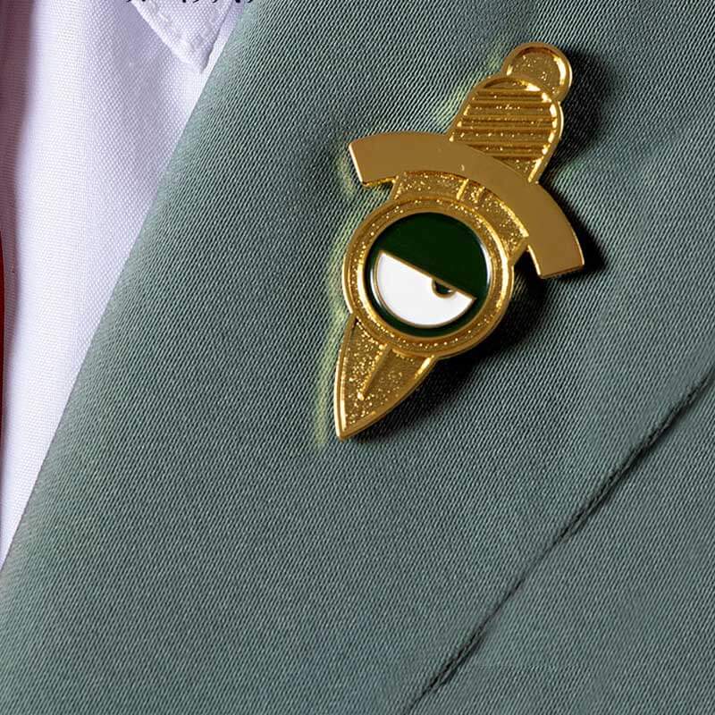 - Made of uniform fabric, high quality and durable. Brooch is made of gold metal, you can pin on the collar.