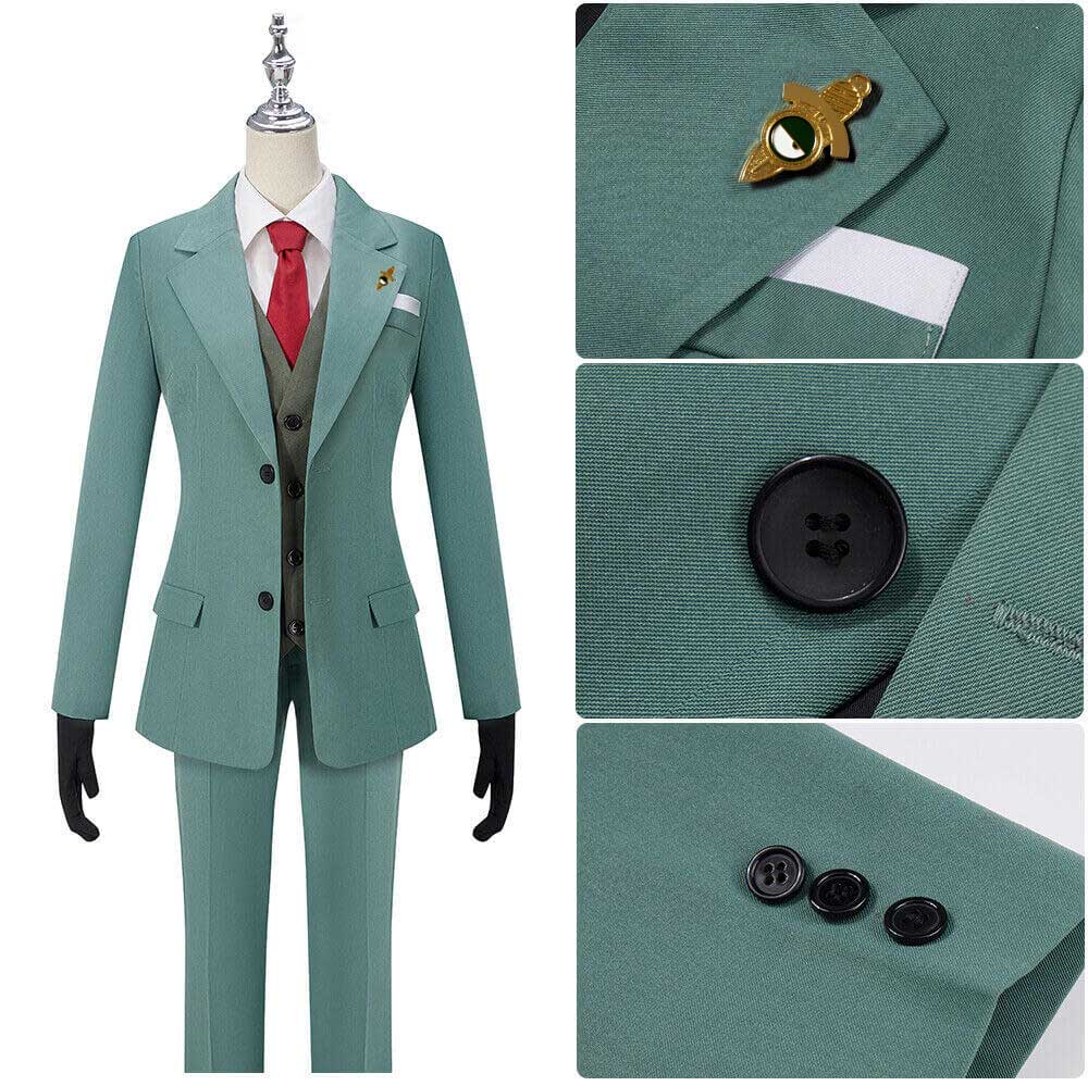 Loid Forger Uniform includes 1x coat, 1x pair of pants, 1x vest, 1x shirt, 1x tie, 1x brooch, 1x pair of gloves.