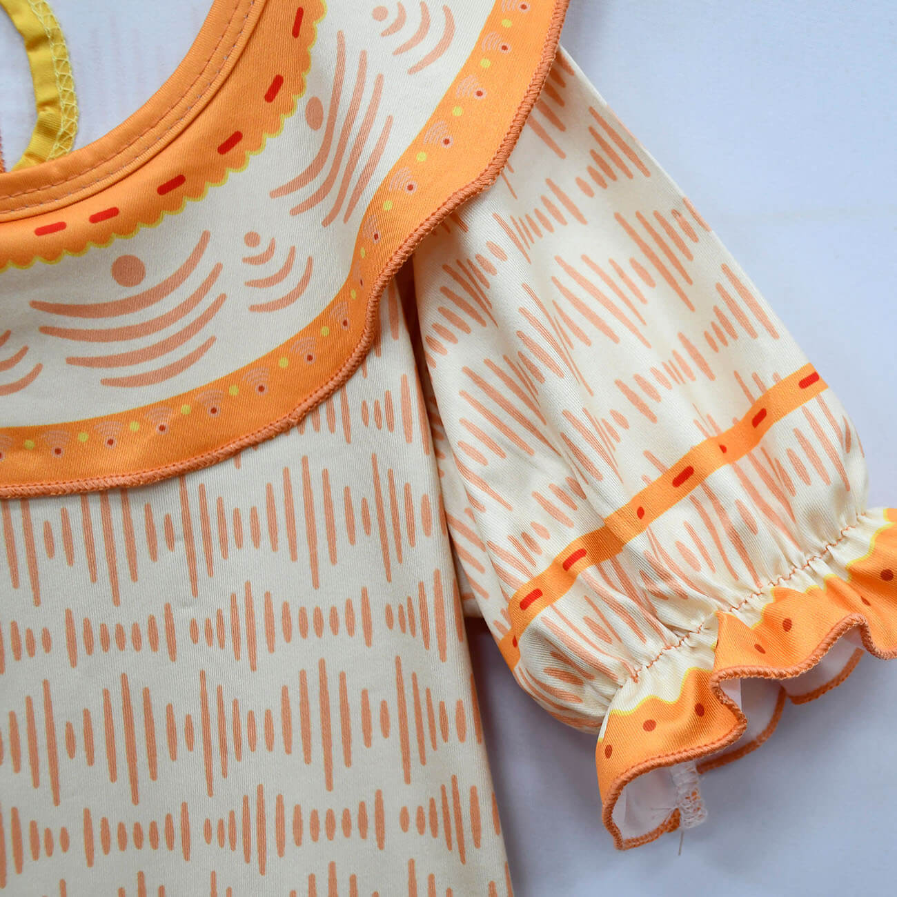 - Dress features a scalloped collar and lace sleeves, match with authentic printed-style designs. 100% restored the character.