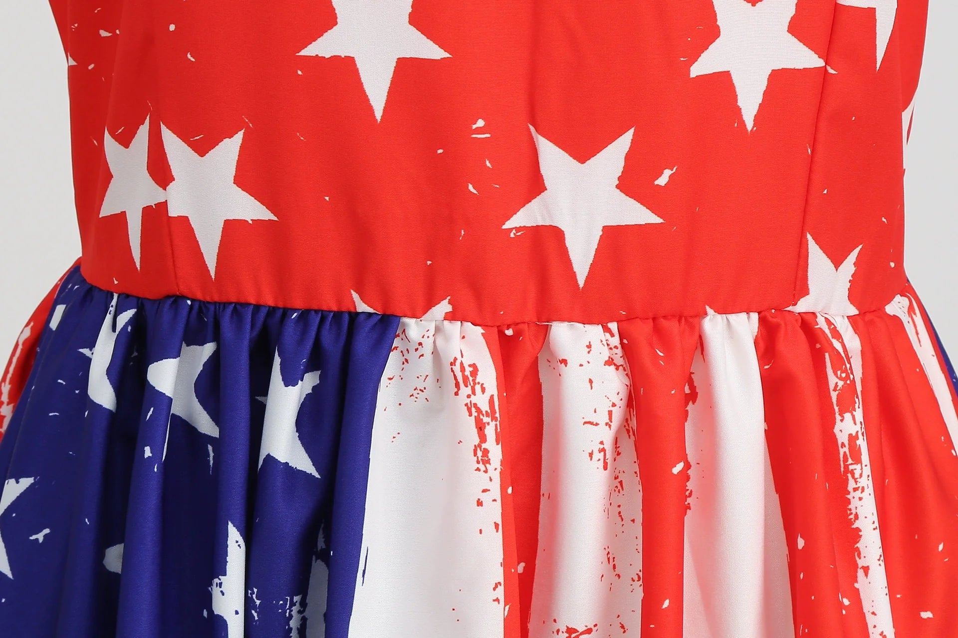 Women's Fourth Of July Dress Colorful Spaghetti Strap Patriotic Dress.